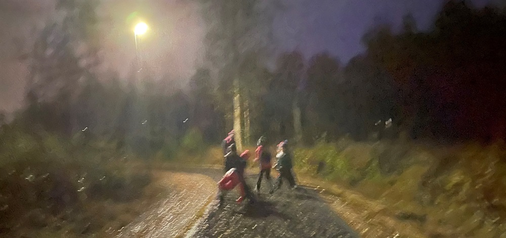 Även till denna barmarksträning medtages stavar och pannlampa.